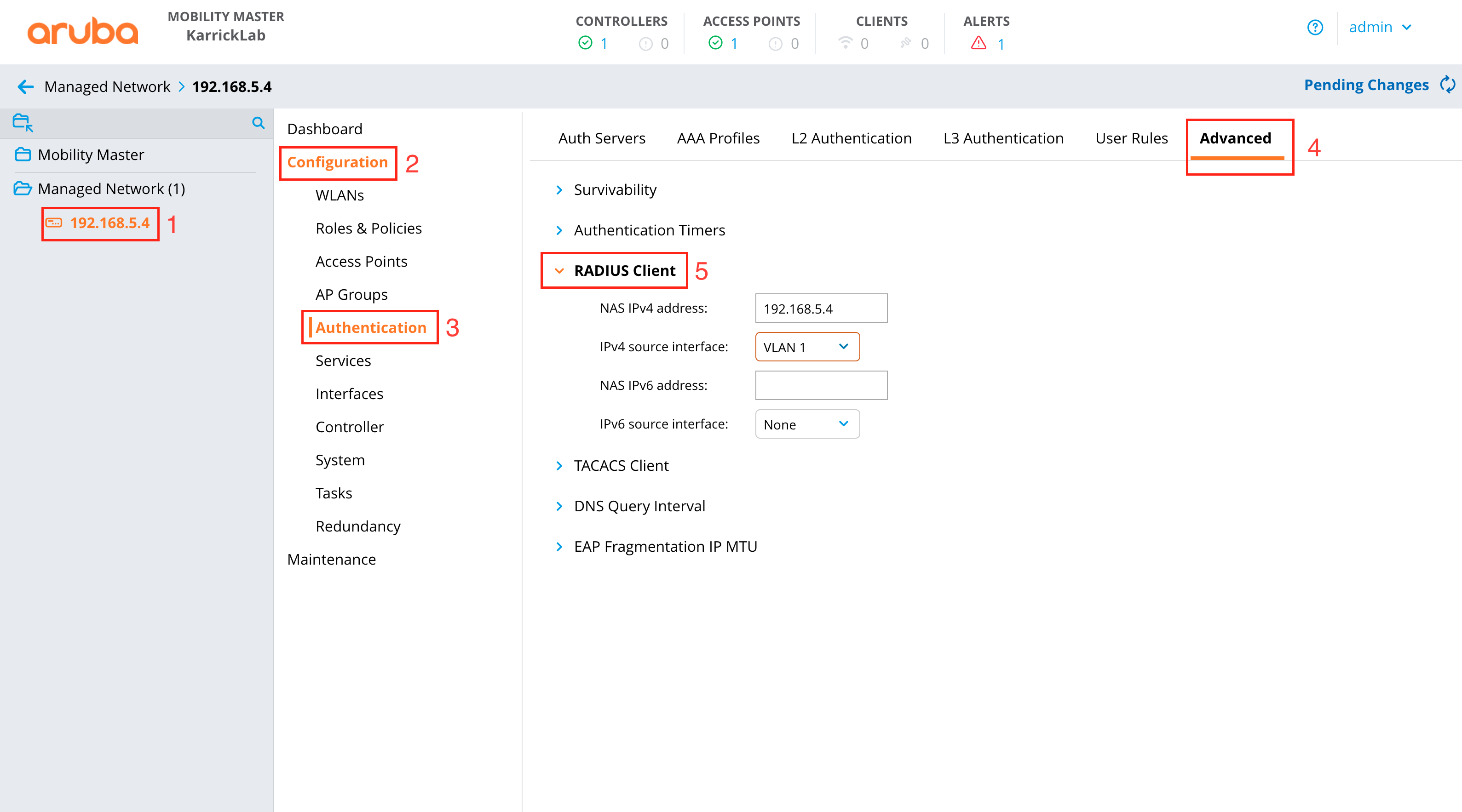 Once the MC is added to the Mobility Master, configuration is completed from the MM GUI.