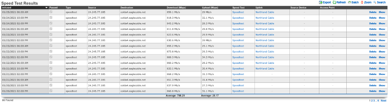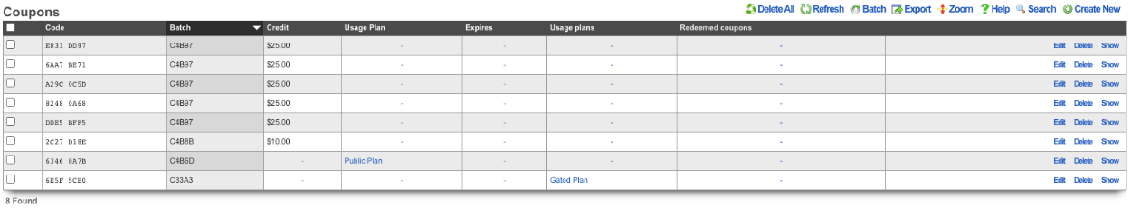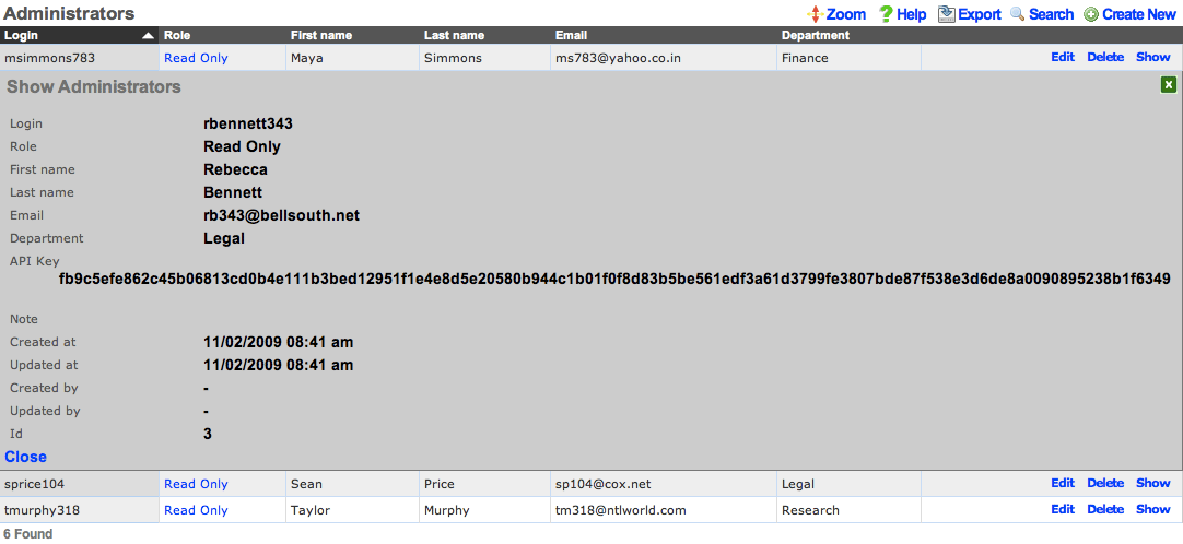 Clicking on the show link at the right of each record displays all of the detailed information available for that record.
