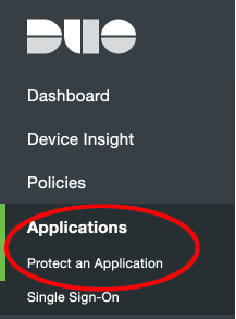 To do so, click on the applications link on the Duo Dashboard, and then on "Protect an Application".