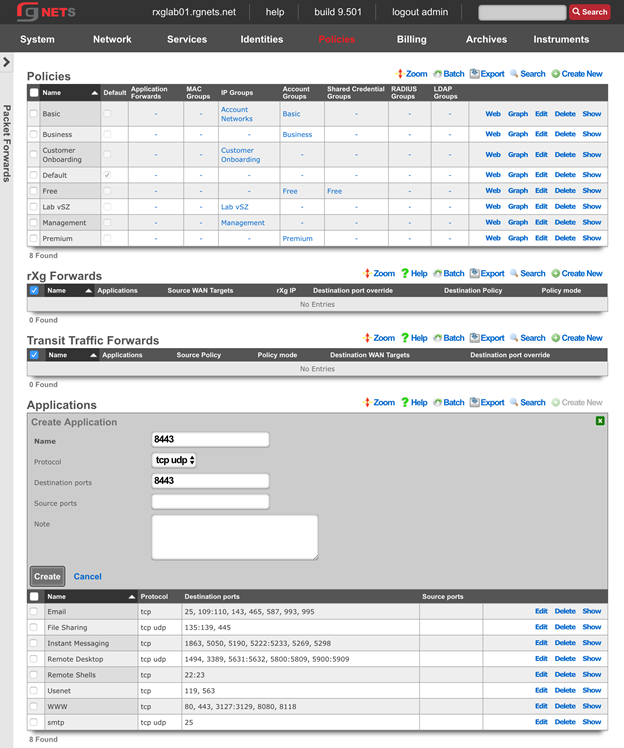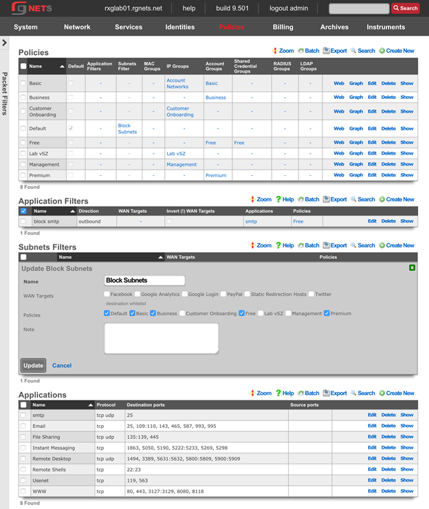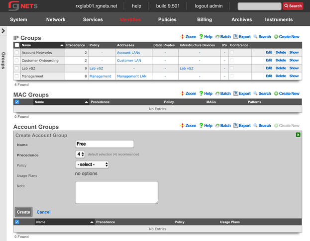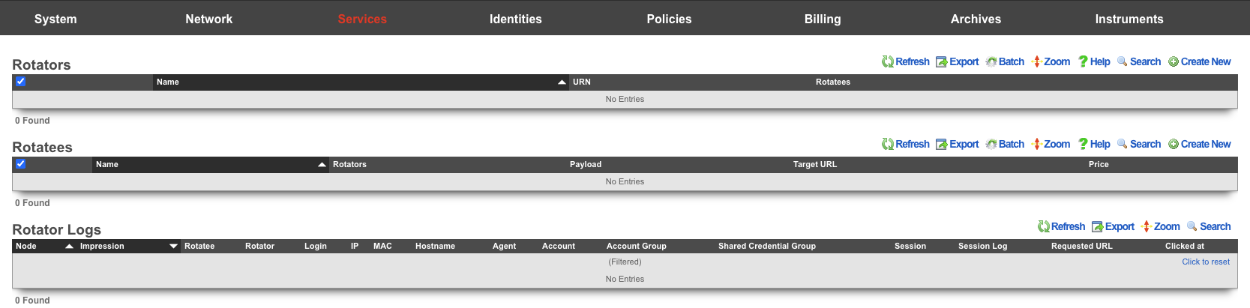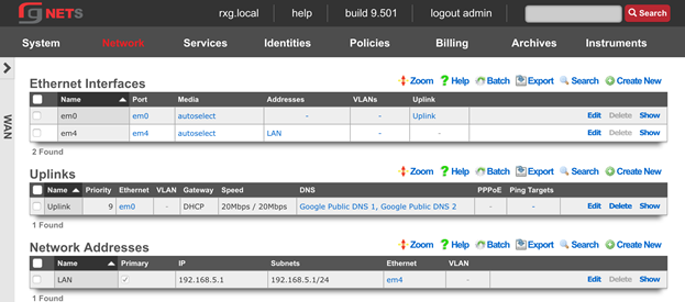 Operator manipulation of data in the rXg administrative console is accomplished through AJAX enabled scaffolds. Each view consists of one or more scaffolds for various data aspects that can be manipulated to configure the subsystem.
