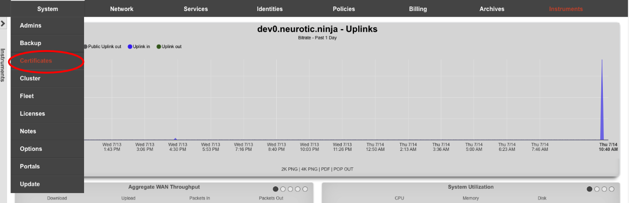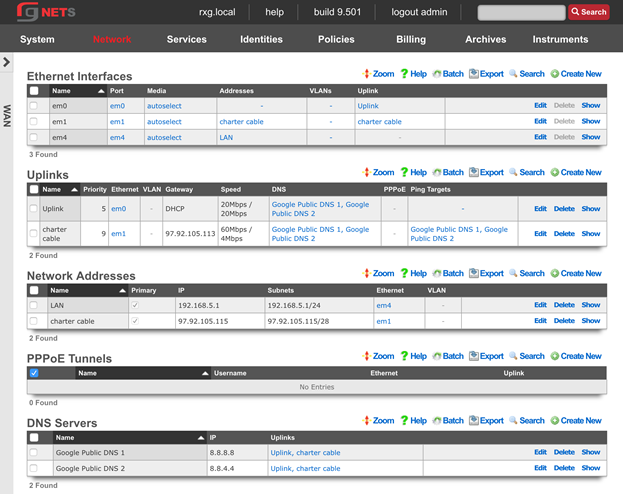The operator must configure and maintain several aspects of the rXg in order to properly deploy and operate an rXg powered revenue generating network. The rXg requires the operator to create an administrator , install an SSL certificate signed by a trusted third-party, and configure the appropriate time zone and time server options before an RGN may be brought into production. These prerequisites, as well as many other global configuration settings, are configured via the views of the System menu.