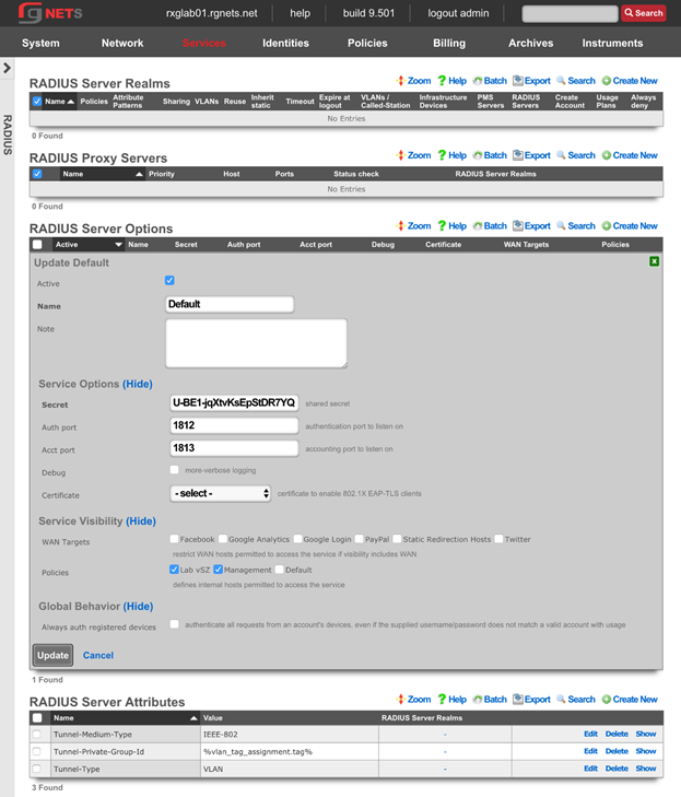 The rXg has now been configured to take control of the Aruba IAP, configuration changes to the WLANs from the admin gui of the rXg will be pushed automatically to the Aruba IAP.