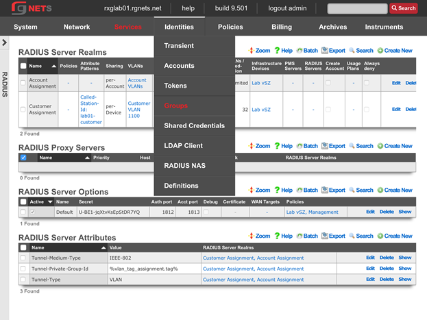 Next the RADIUS Server Realms must be configured to use MPSK. Navigate to Services::Radius.