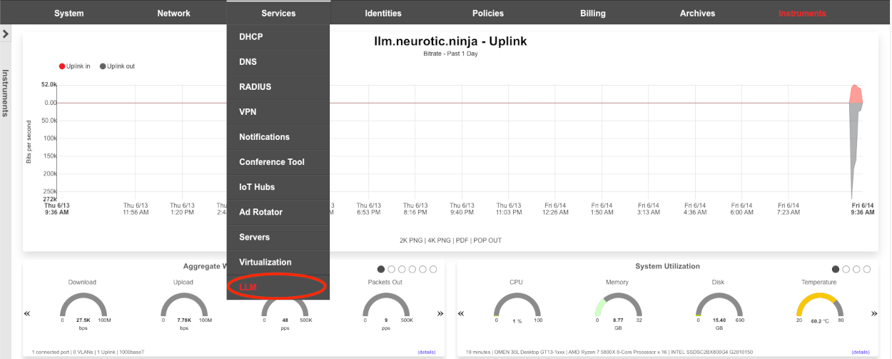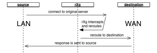 Each of the buttons of the main menu represents a subsystem of the rXg. The primary link on each button leads to a dashboard of that subsystem. The menu text of the primary button becomes red to indicate which subsystem is currently being viewed.