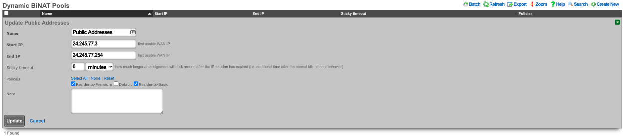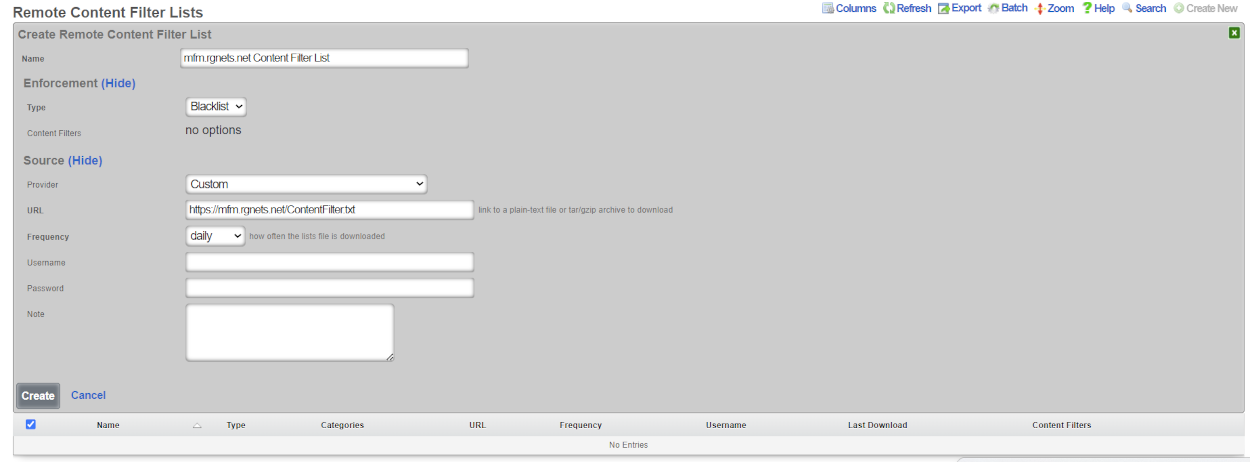 The note field is a place for the administrator to enter a comment. This field is purely informational and has no bearing on the configuration settings.