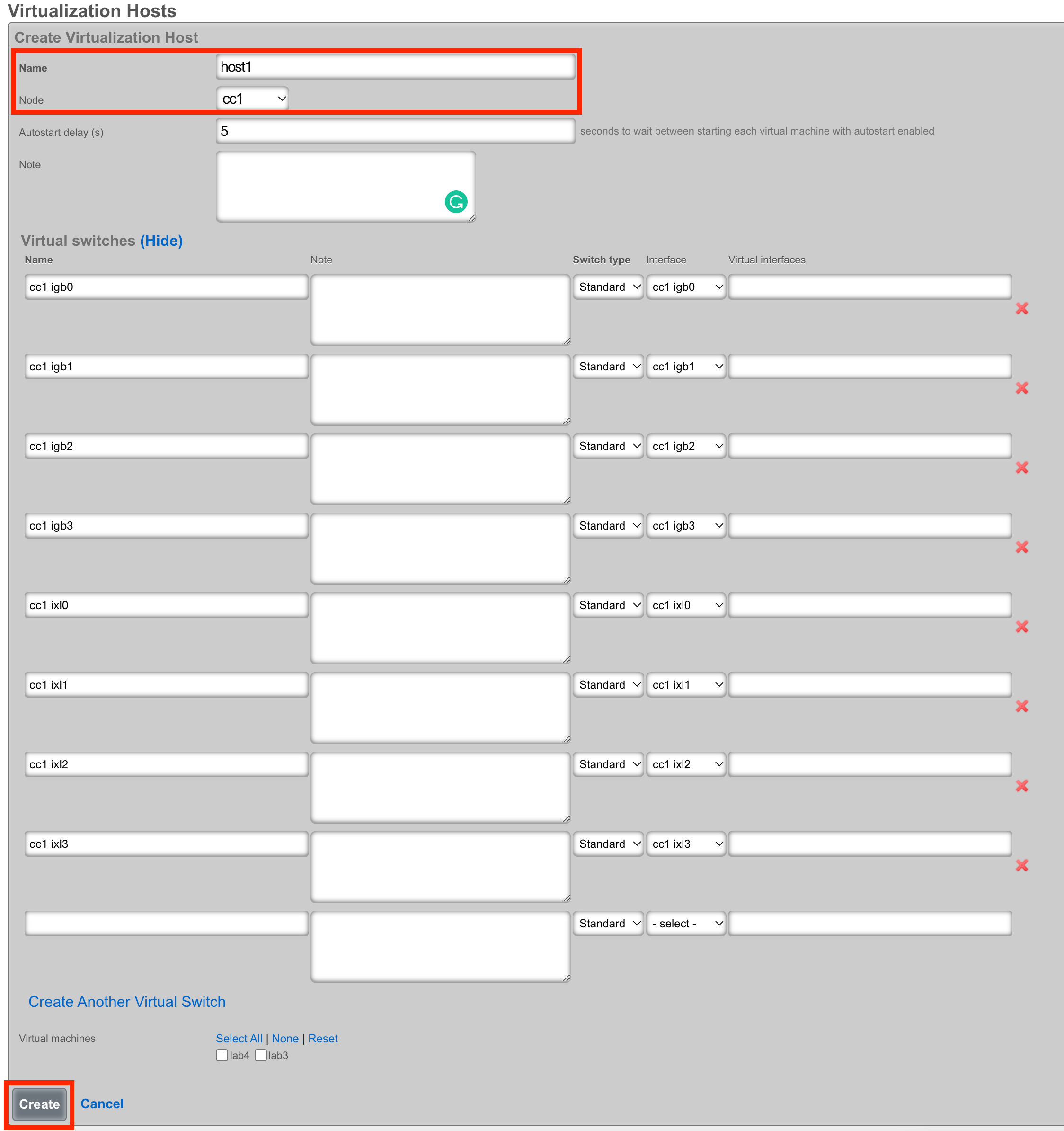 The Name field is arbitrary and can be set to anything. The Type field should be set to Aruba IAP. The Host field is the IP address we want the virtual controller to have. If the controller is local to the rXg then the Subnet mask and Gateway IP fields can be left blank. Set the API port field to the correct port, by default it is set to 4343 and shouldn't be changed the Aruba IAP has been configured to use a different port. Set the Username and Password field with the correct username and password and click Create.