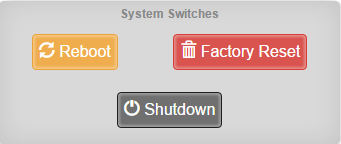 At the bottom right of the system dashboard is a dialog that allows the administrator to reboot , shutdown , and reset the rXg.