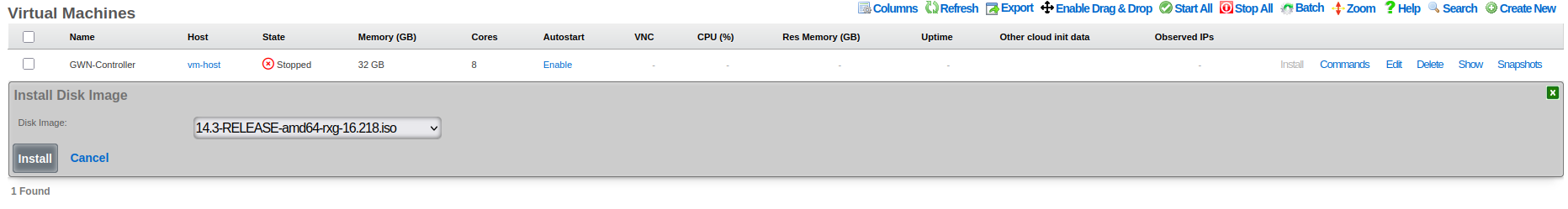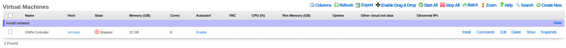 Important: If you have graphics enabled on the VM, you must connect to the console using VNC or the scaffold console link before the VM will begin the installation process.