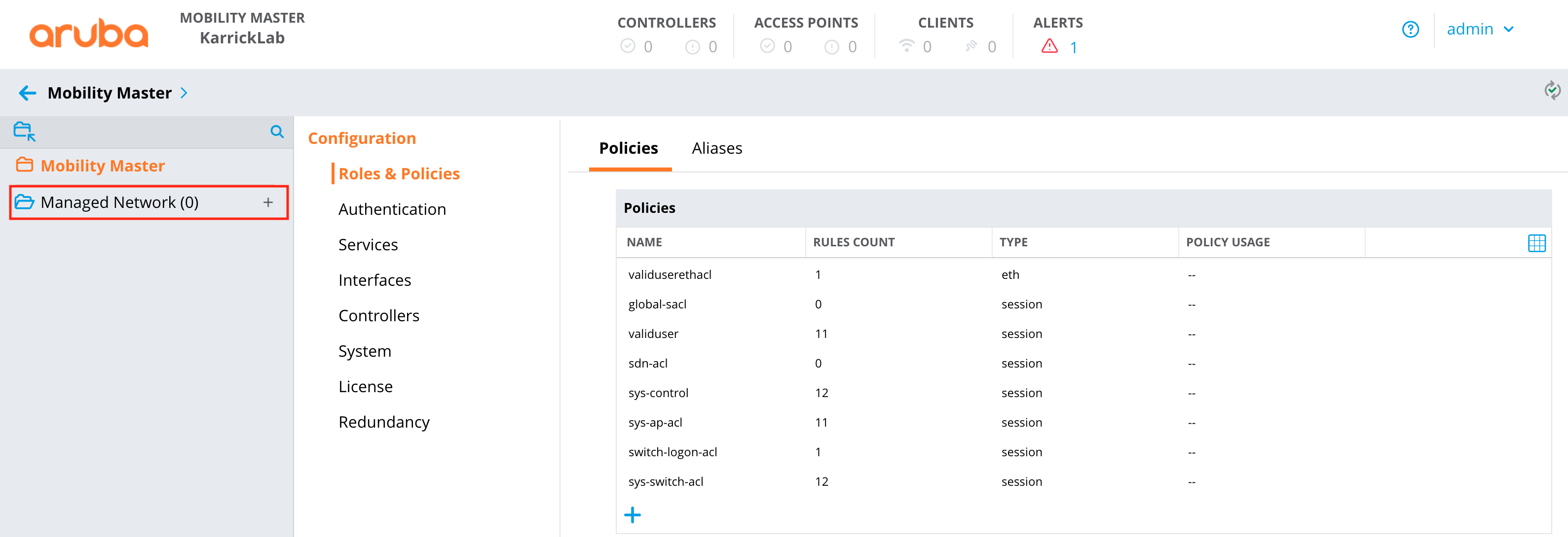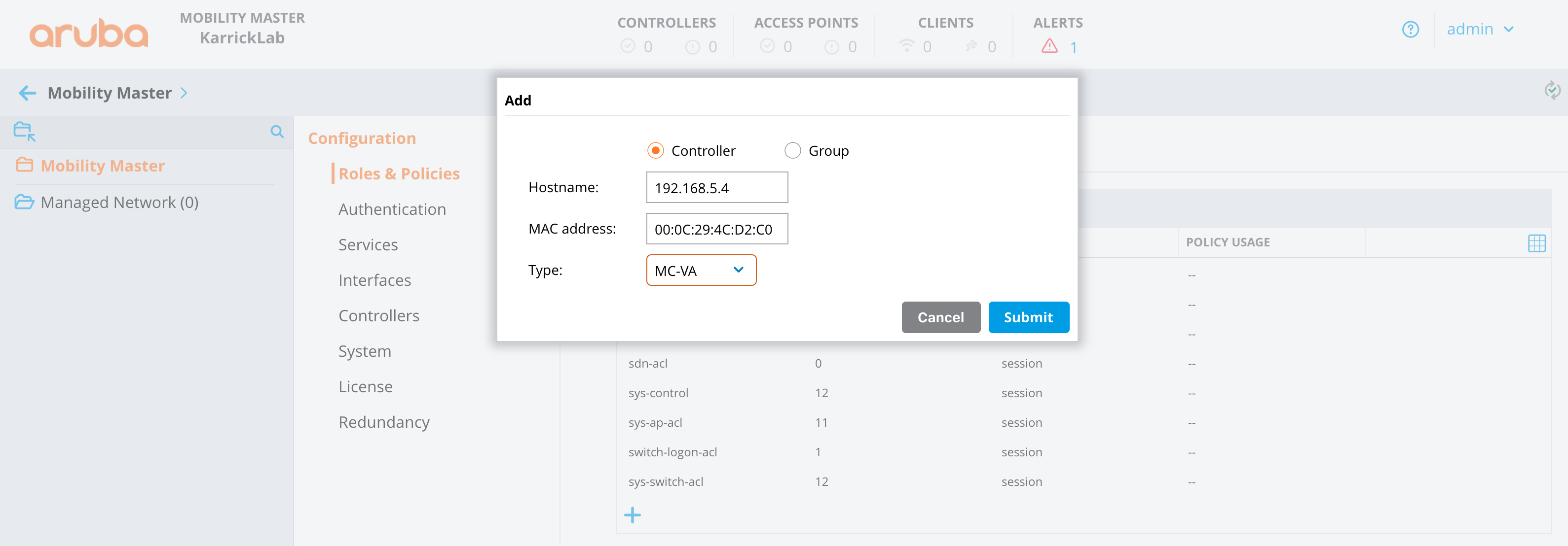 Add a Mobility Controller (MC) to the Managed Network Section.