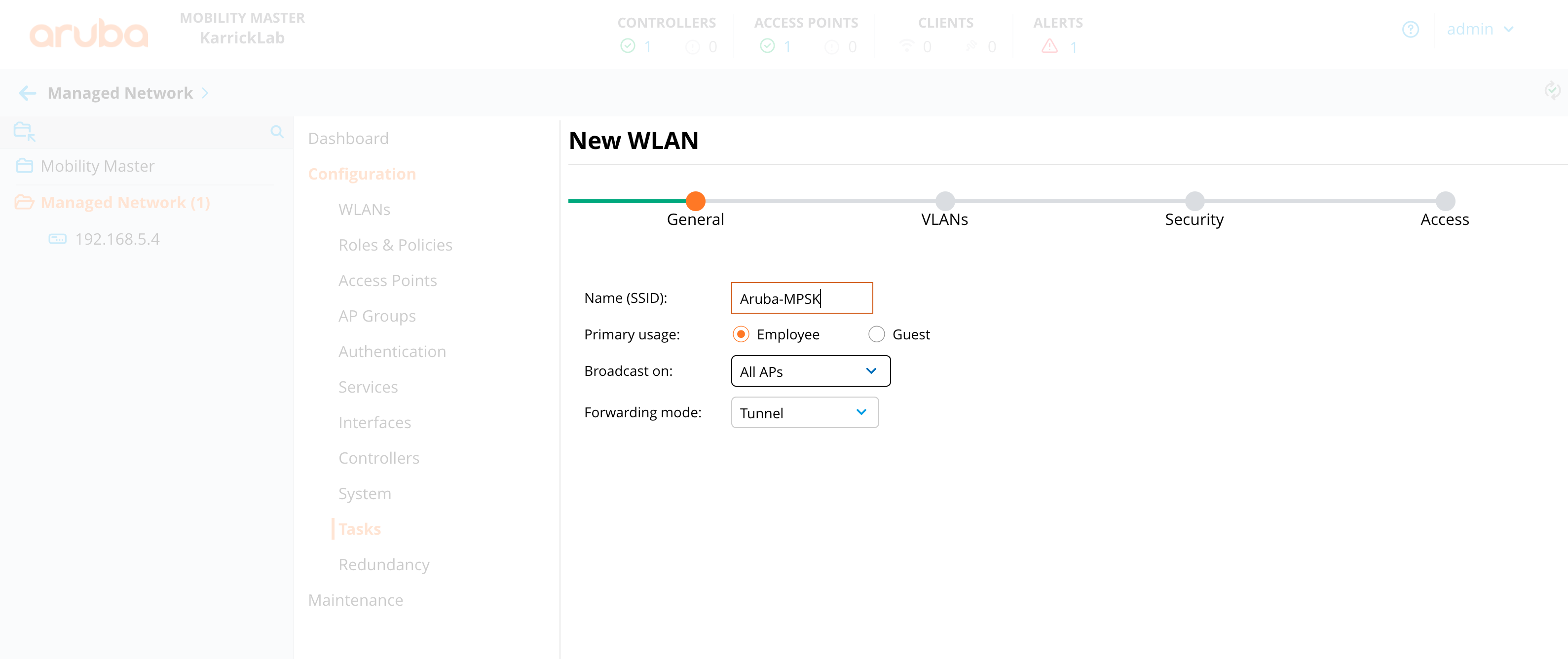 Follow manufacturer guidelines for deployment, and licensing, of Aruba Networks Mobility Master. MPSK is only available with a MM.