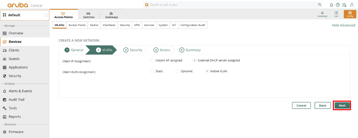 Click on devices, which will take us to the WLANs section. Click Add SSID